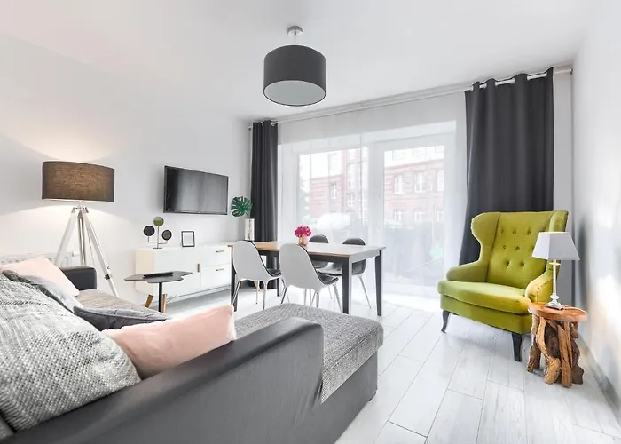 Apartament 555 Ogrod W Centrum amenty No.1 ferielejlighed ligger 25 minutters gang fra Den Pommerske Greves Slot og har fri WiFi i hele ejendommen. Denne indkvartering består af 3 soveværelser, 1 badeværelser og et køkken. Stedet kan rumme op til 8 gæster.